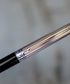 STYLO BILLE CARAN D’ACHE LEMAN RESINE NOIRE DOUE PL. ARGENT GODRONS