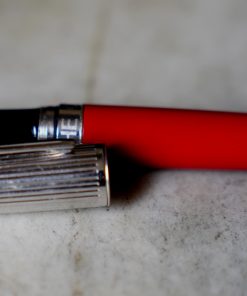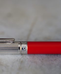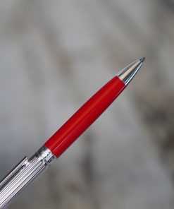 STYLO BILLE CARAN D’ACHE LEMAN RESINE ROUGE DOUE PL. ARGENT GODRONS