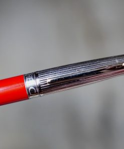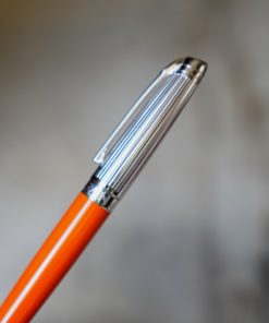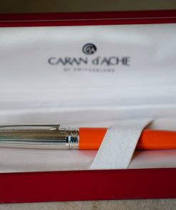STYLO PLUME CARAN D’ACHE LEMAN LAQUE ORANGE & METAL GODRONS- PLUME OR MASSIF 18 CARATS
