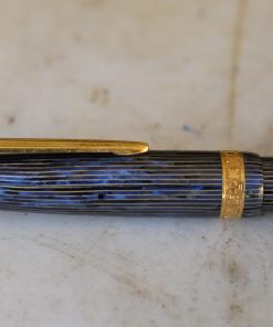 RARE STYLO PLUME DIPLOMAT EN RESINE VERT & BLEU STRIE – PLUME EN OR MASSIF 14 CARATS