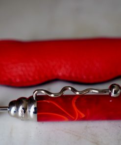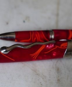 ORIGINAL STYLO BILLE JEAN-PIERRE LEPINE ZIG-ZAG EN RESINE ROUGE MARBREE & CHROME