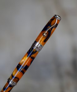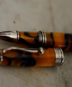STYLO ROLLER JEAN-PIERRE LEPINE EN RESINE MARRON TIGREE & CHROME- 99 MM