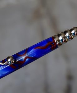 STYLO BILLE JEAN-PIERRE LEPINE ZIG ZAG RESINE BLEUE TRAIT ROUGES & CHROME – DESIGN SUPERBE