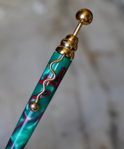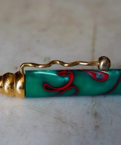 STYLO BILLE JEAN-PIERRE LEPINE ZIG ZAG RESINE VERTE TRAITS ROUGES – FINITION PL. OR