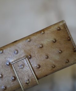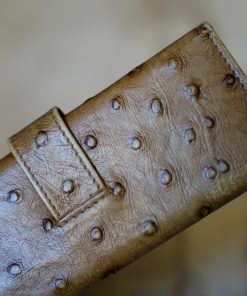 ETUI A STYLOS SPALDING & BROS CUIR KAKI – FINITION AUTRUCHE – MODELE DEUX PLACES