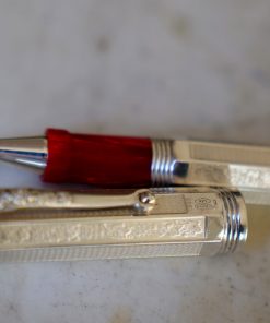 STYLO ROLLER MONTEGRAPPA PRIVILEGE RESINE ROUGE – ARGENT MASSIF 925 FLEURS MOTIF VIGNE