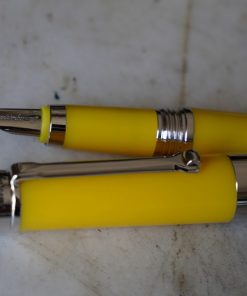 STYLO PLUME MONTEGRAPPA PAROLA EN RESINE JAUNE – FINITION CHROMEE