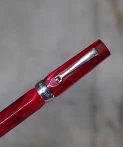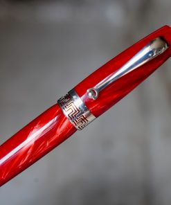 STYLO PLUME MONTEGRAPPA RESINE ROUGE MARBRE & ARGENT MASSIF 925 – PLUME EN OR MASSIF 18 CARATS