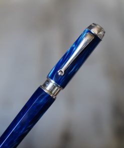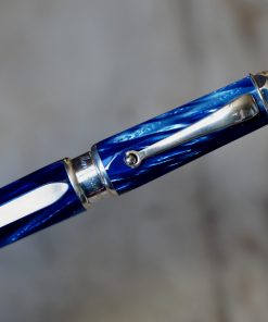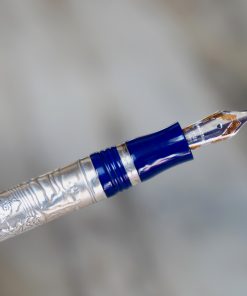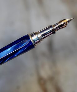 STYLO PLUME MONTEGRAPPA EMBLEMA RESINE BLEUE MARBREE ARGENT MASSIF 925 – PLUME OR 18 CARATS