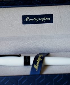 STYLO PLUME MONTEGRAPPA FORTUNA EN LAQUE BLANCHE- FINITION RYTHENIUM NOIRCI
