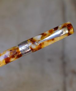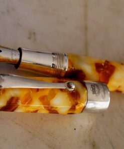 STYLO PLUME MONTEGRAPPA EN RESINE BEIGE & AMBRE MARBREE- PLUME OR MASSIF 18 CARATS