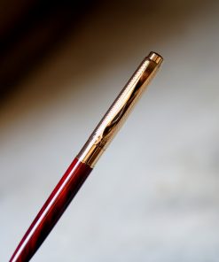STYLO BILLE PELIKAN CELEBRY EN LAQUE ROUGE MARBREE – CAPUCHON PL. OR 18 CARATS