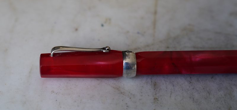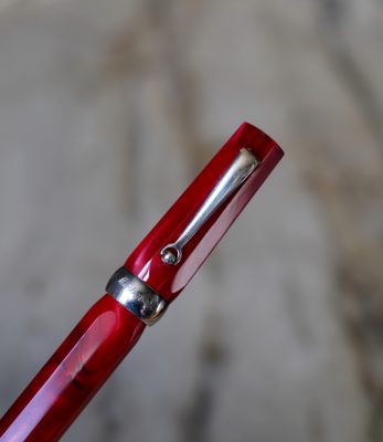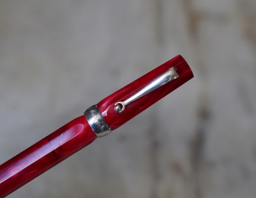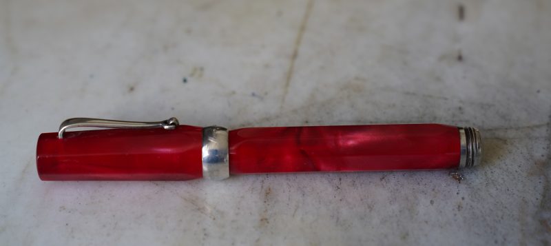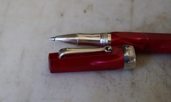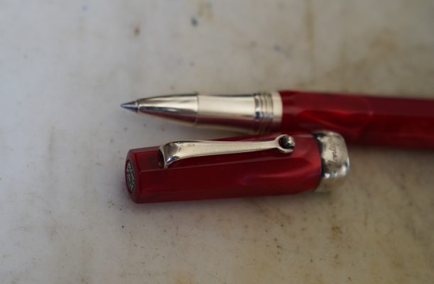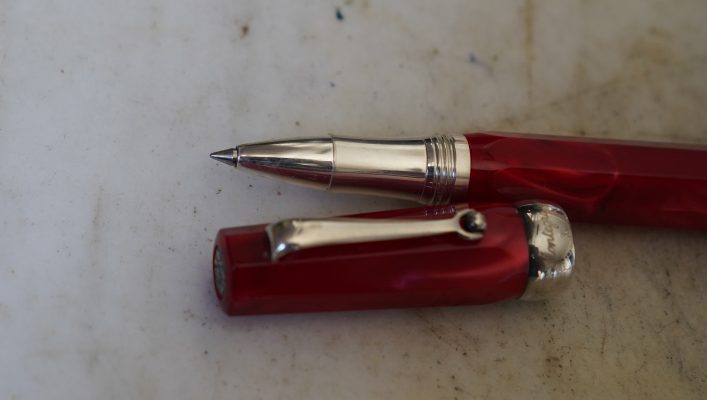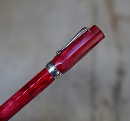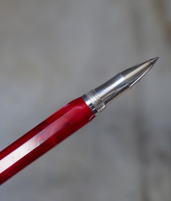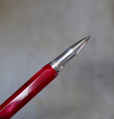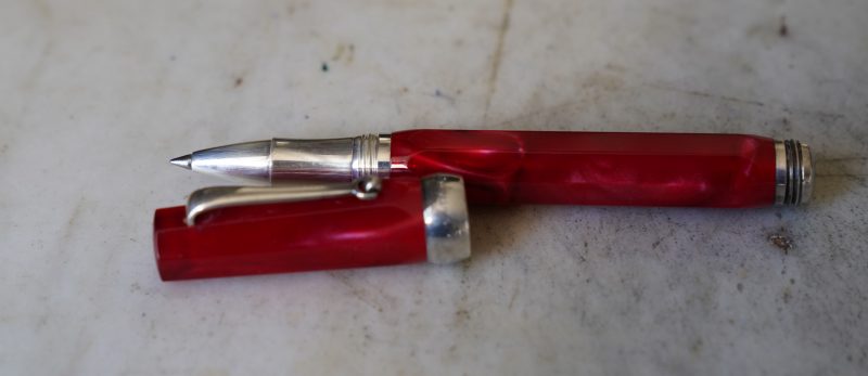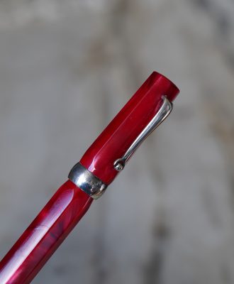 Stylo roller réalisé en résine précieuse rouge marbrée