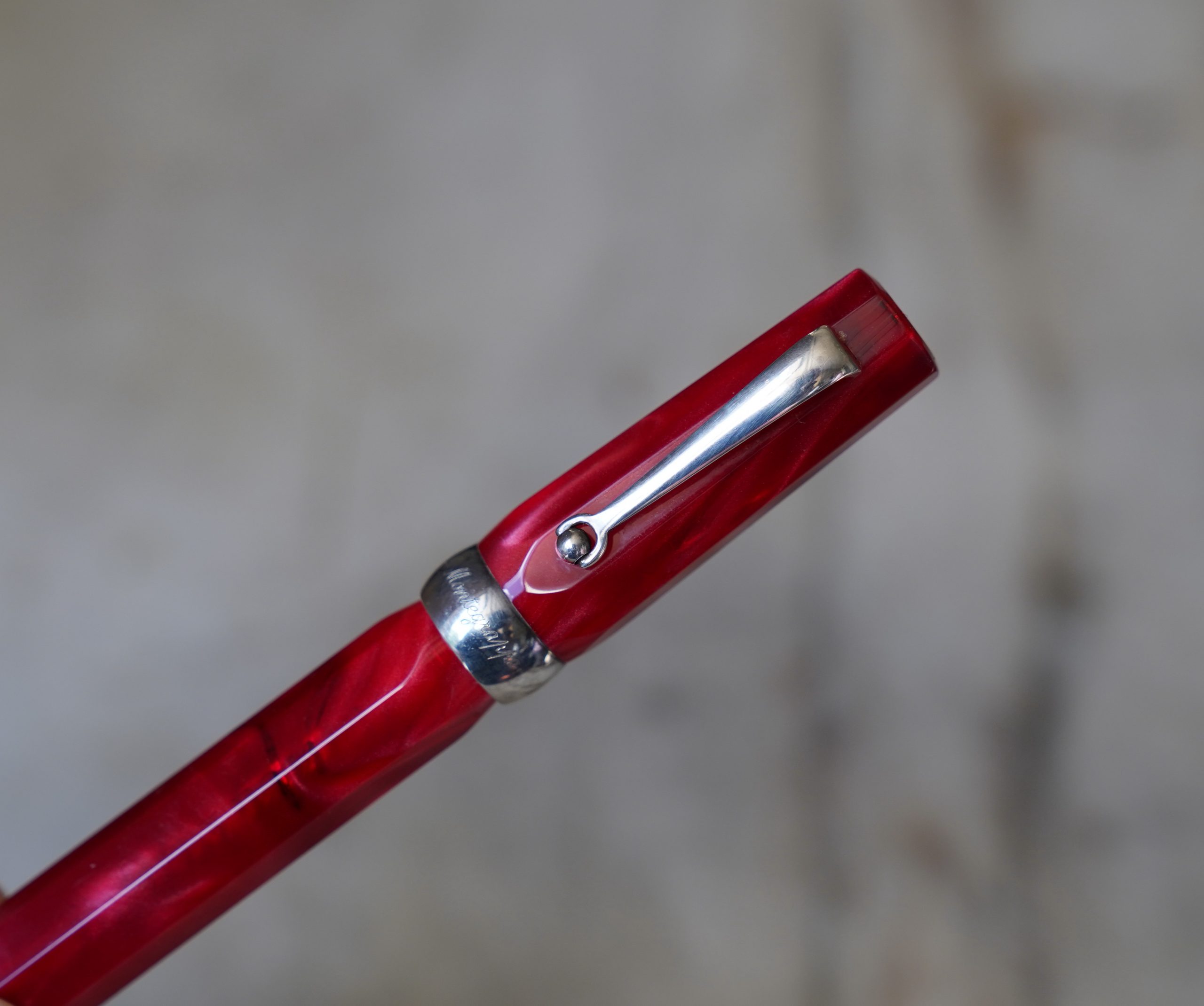 CHARMANT STYLO ROLLER MONTEGRAPPA MICRA RESINE ROUGE MARBREE & ARGENT MASSIF 925