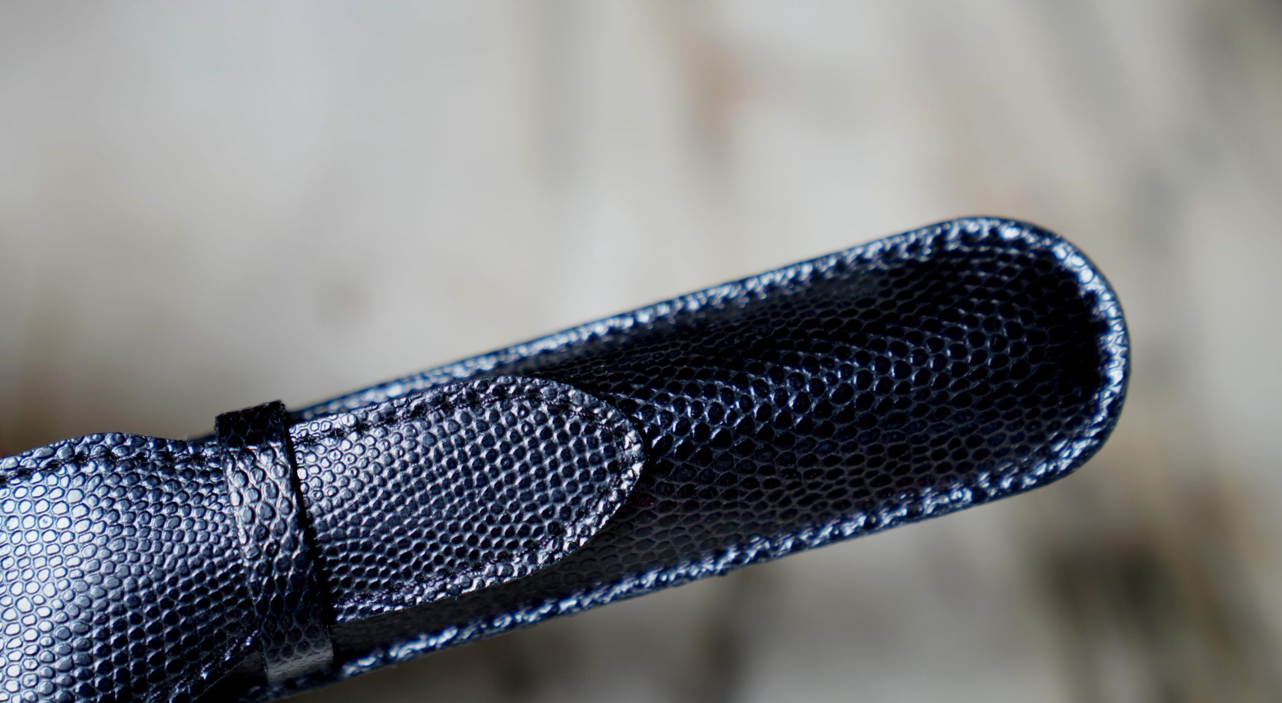 MIGNON – ETUI A STYLOS EN CUIR NOIR LEZARD – MODELE UNE PLACE