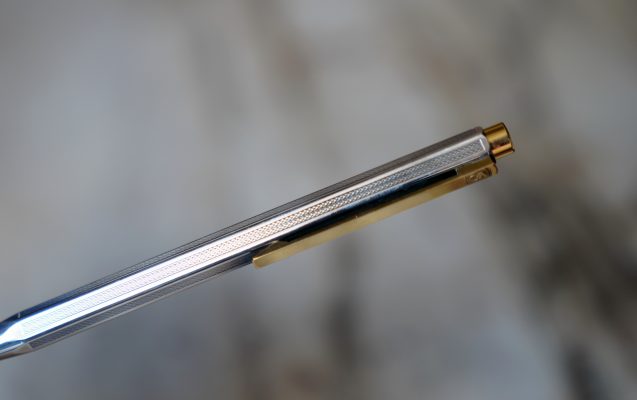 STYLO BILLE CARAN D’ACHE EN METAL FINITION LIGNES GUILLOCHEES & PL. OR