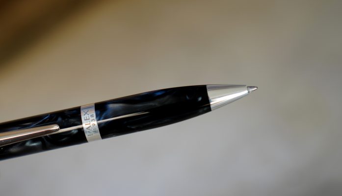 STYLO BILLE LALEX 1938 EN RESINE ANTHRACITE MARBRE & CHROME – 114 MM
