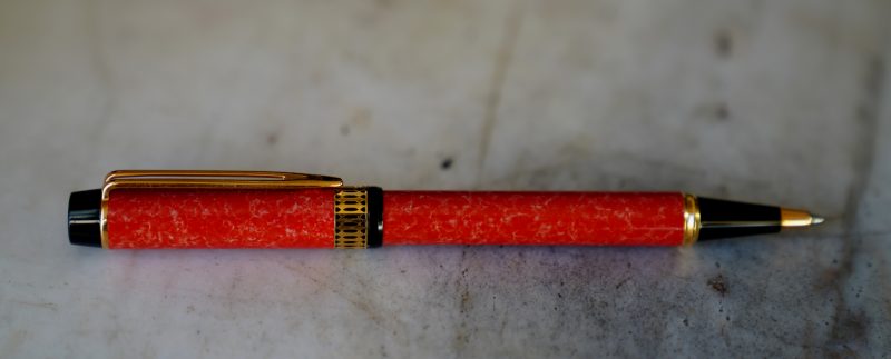 Réalisé en résine Rouge orangée, finition marbrée