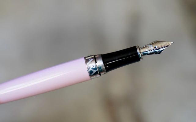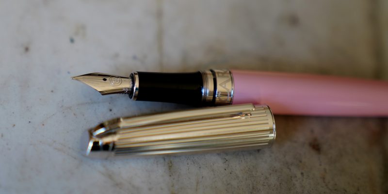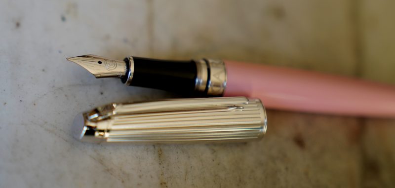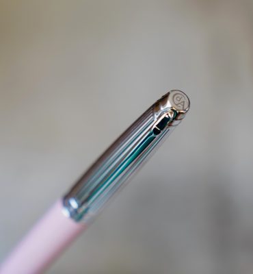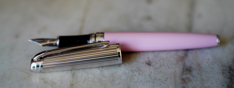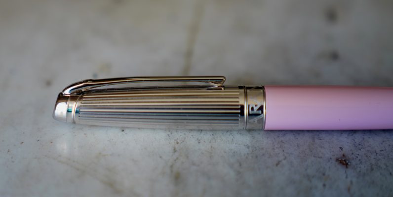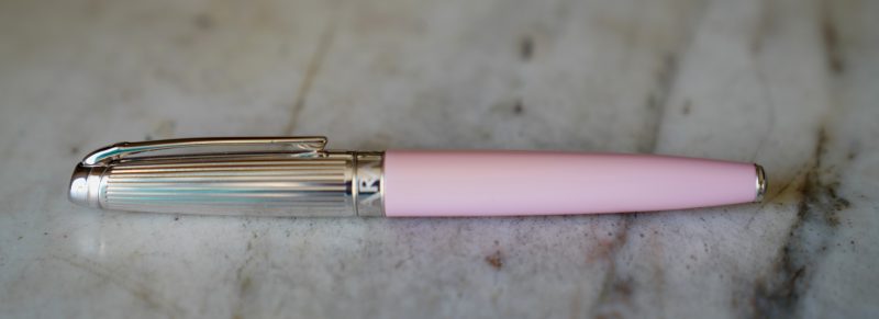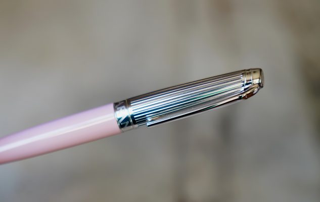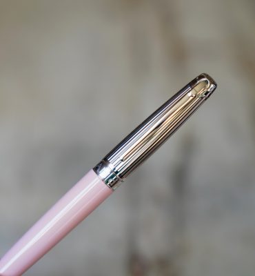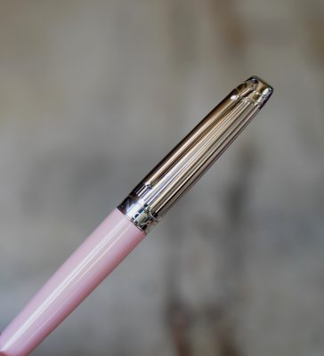 Réalisé en Laque Rose, capuchon en métal finition Cannelée