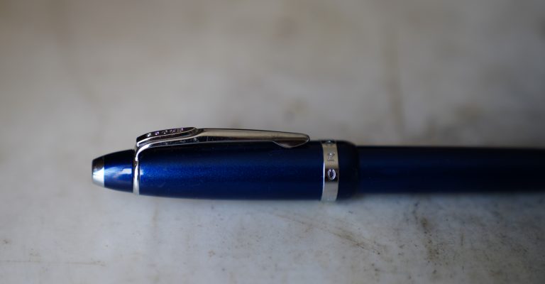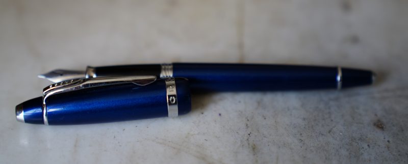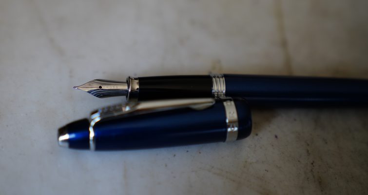Stylo plume CROSS en résine bleu foncé, finition métallisée