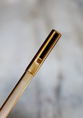 Réalisé en Métal plaqué Or, finition Grain d’orge & Cannelé