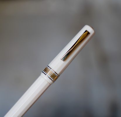 Réalisé en résine Crème, attributs en métal plaqué Or