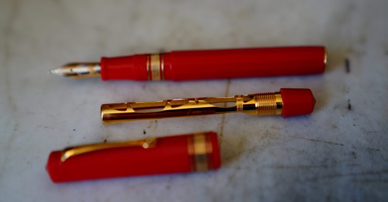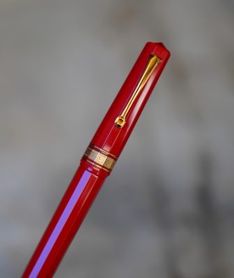 Réalisé en résine Rouge vif, attributs en métal plaqué Or