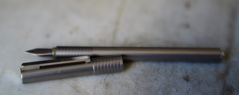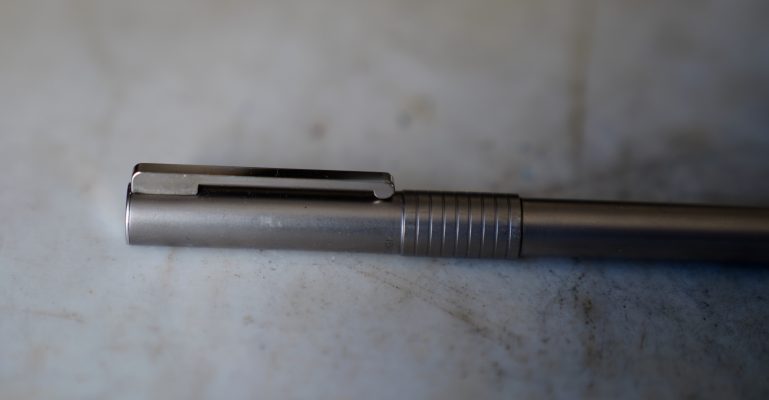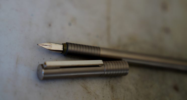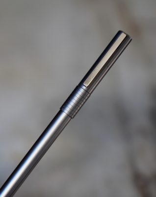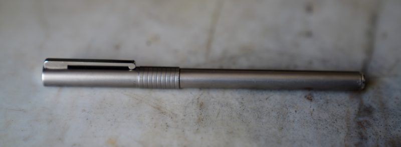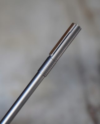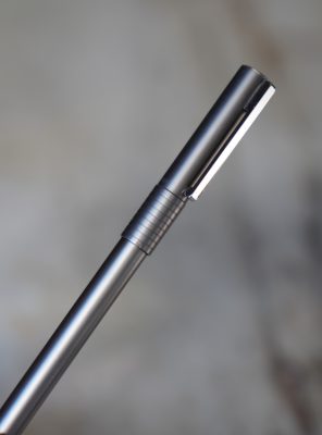 Stylo plume réalisé en métal gris moyen, finition brossée
