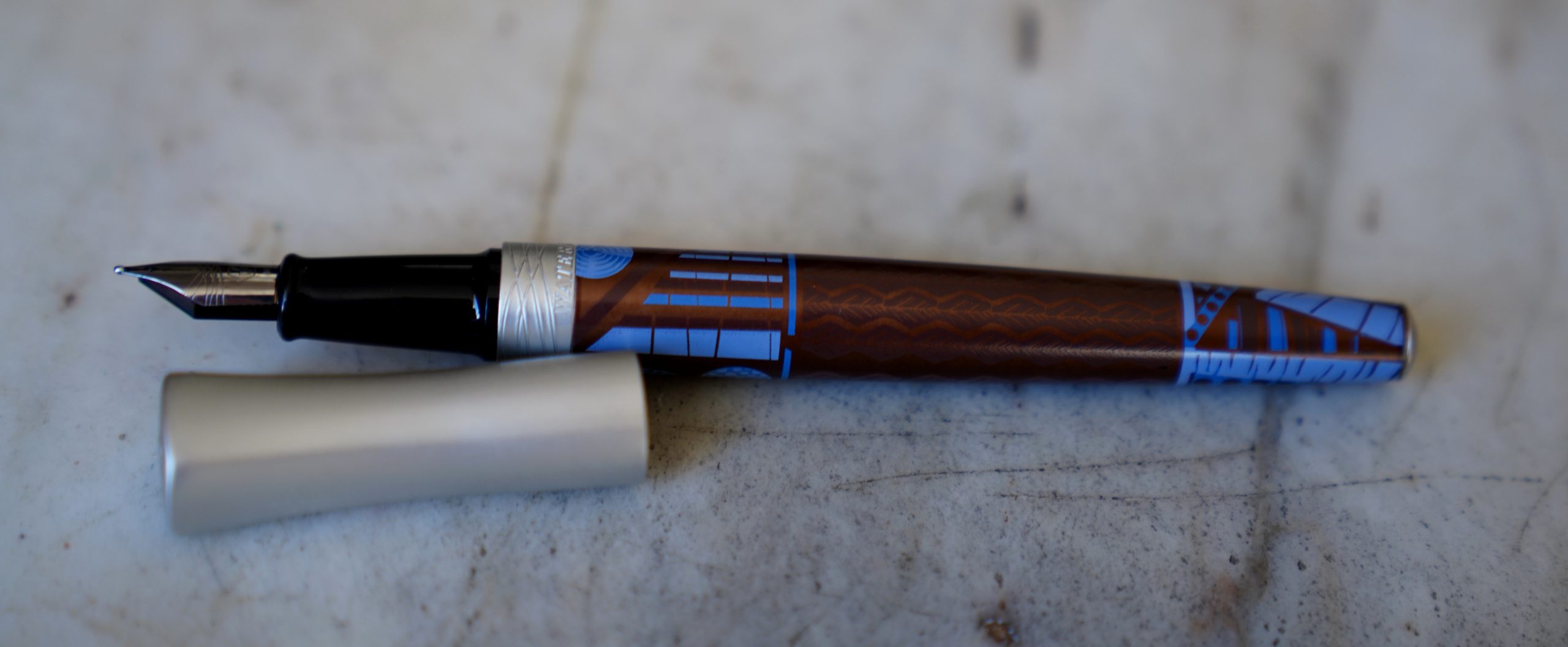 STYLO PLUME WATERMAN AUDACE LAQUE BRONZE MOTIFS BLEUS GEOMETRIQUES – PLUME METAL
