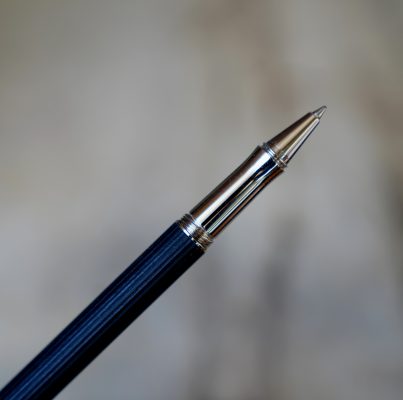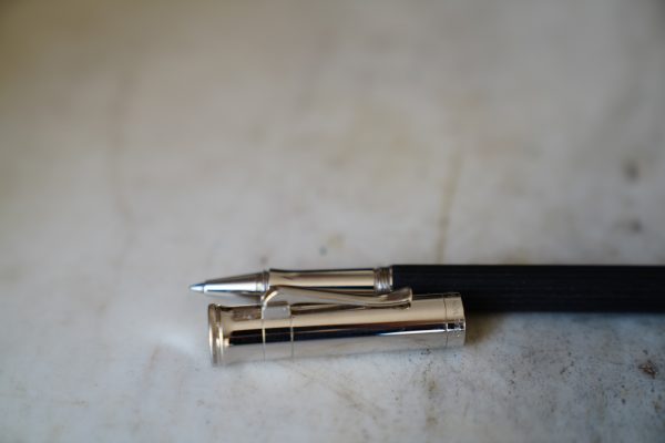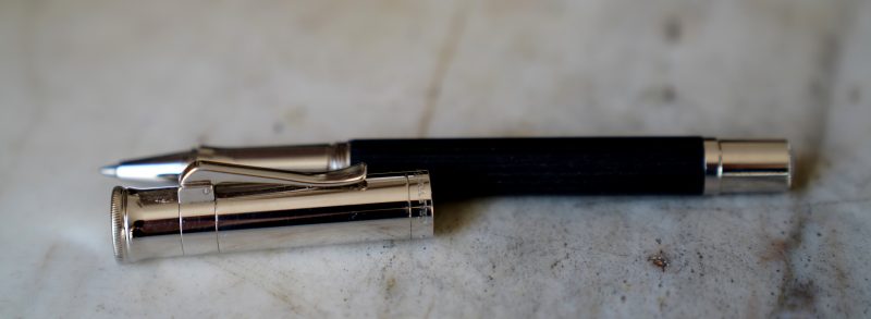 STYLO ROLLER GRAF VON FABER-CASTELL RESINE NOIRE GODRONS- PL. PLATINE