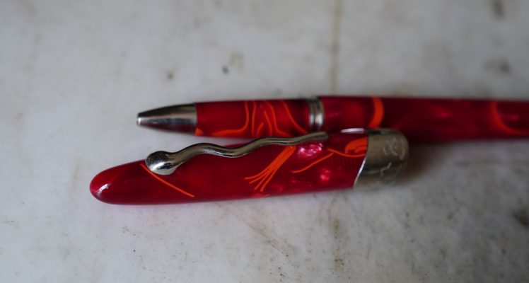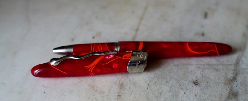 Réalisé en résine rouge marbrée