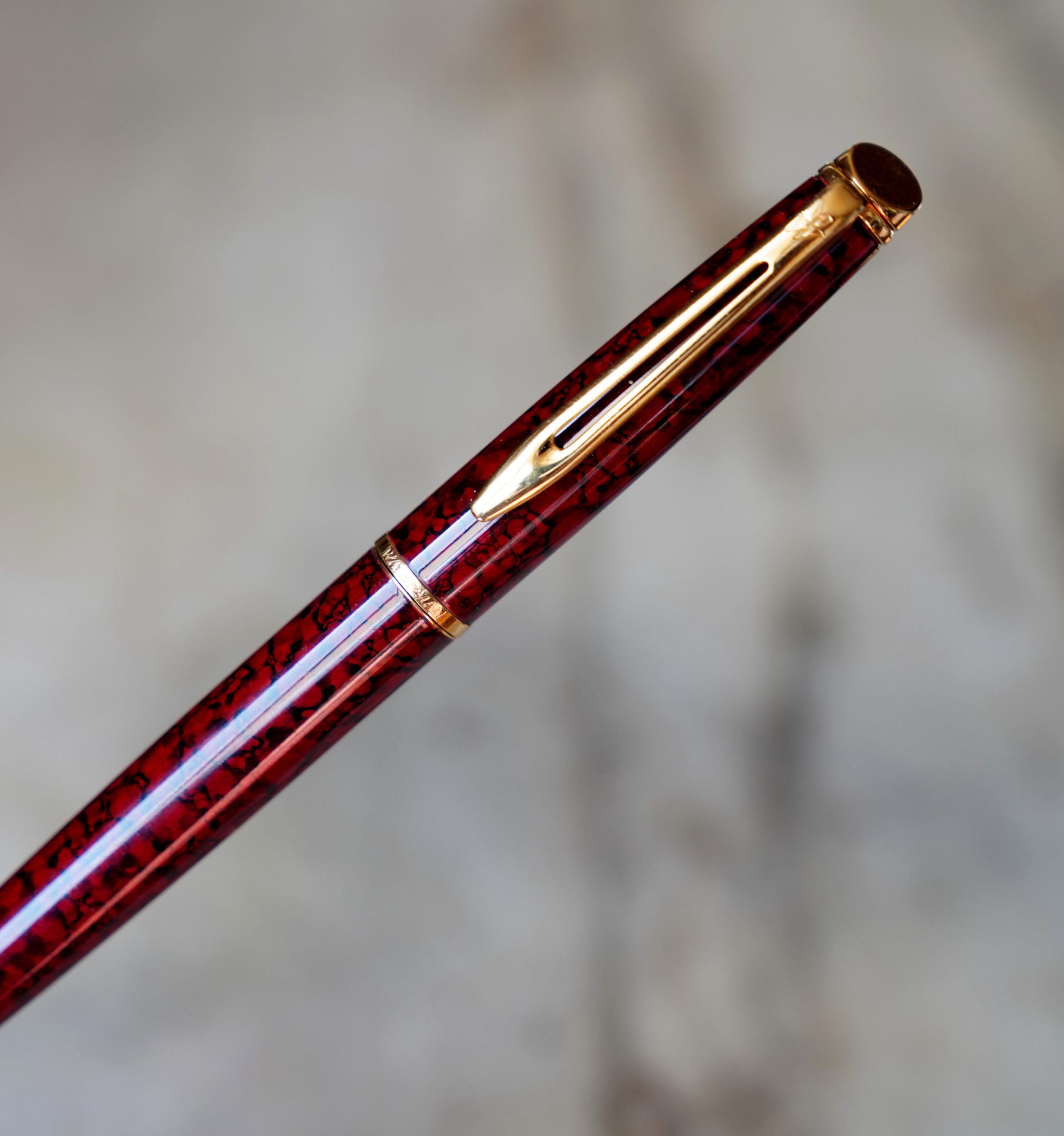 STYLO ROLLER WATERMAN HEMISPHERE EN LAQUE ROUGE MARBREE & METAL PL. OR
