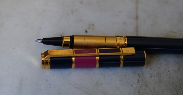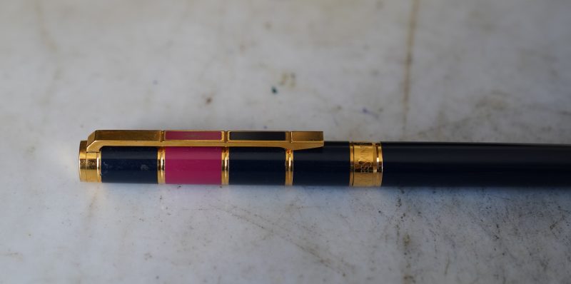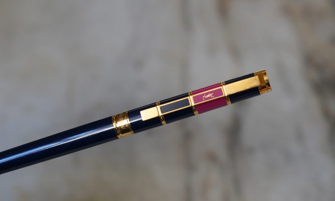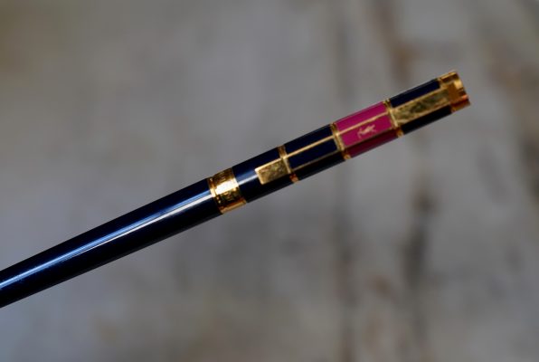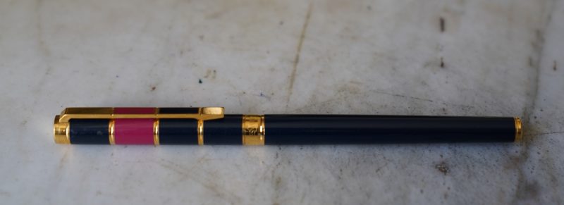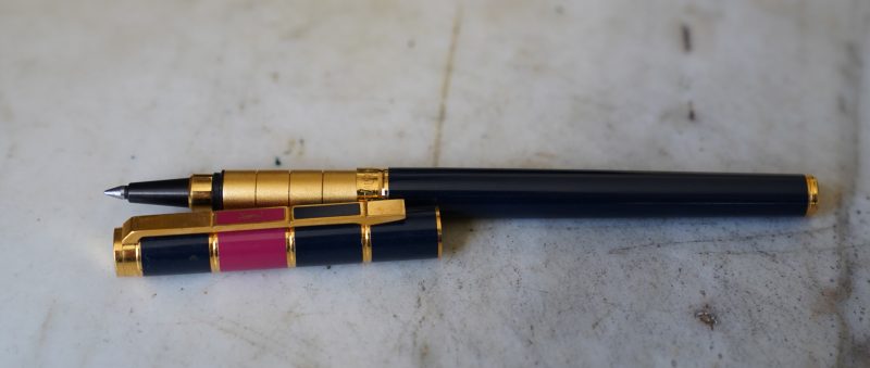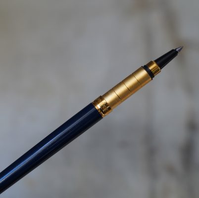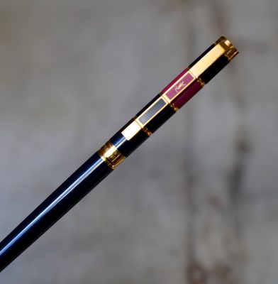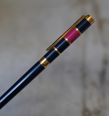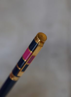 Stylo roller en Laque Bleu marine & Rouge annelée