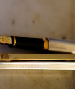 STYLO PLUME CARAN D’ACHE LEMAN LAQUE BLEU NUIT & METAL GODRONS – PLUME EN OR MASSIF 18 CARATS