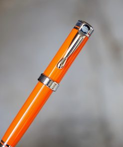 STYLO BILLE HARLEY-DAVIDSON EN RESINE ORANGE & METAL CHROME – AGRAFE AMOVIBLE