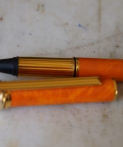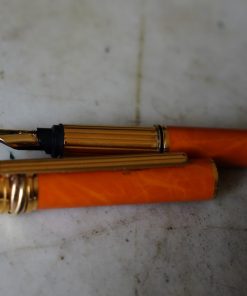 STYLO PLUME CARTIER TRINITY EN LAQUE ORANGE MARBREE – PLUME OR MASSIF 18 CARATS