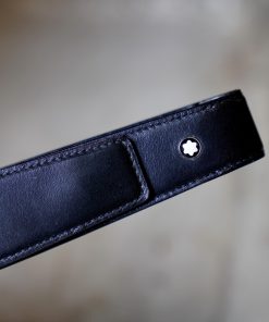 ETUI A STYLOS MONTBLANC EN CUIR NOIR – INTERIEUR CUIR BRUN – MODELE A RABAT UNE PLACE