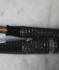 STYLO PLUME PARKER VACUMATIC GRIS VERT STRIE – BLUE DIAMOND – PLUME EN OR MASSIF