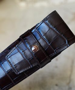 S.T. DUPONT – ETUI A STYLO EN CUIR BRUN FINITION CROCODILE – MODELE DEUX PLACES