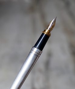 STYLO PLUME S.T. DUPONT SAINT GERMAIN RESINE GRISE & PL. ARGENT – PLUME RHODIUM