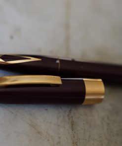 STYLO PLUME SHEAFFER IMPERIAL A POMPE EN RESINE BORDEAUX – PLUME OR MASSIF 14 CARATS