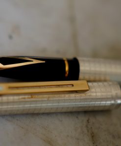 STYLO PLUME SHEAFFER TARGA EN ARGENT MASSIF 925 QUADRILLE – PLUME OR MASSIF 14 K