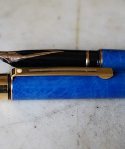 STYLO PLUME SHEAFFER TARGA LAQUE HERMES BLUE – PLUME EN OR MASSIF 14 CARATS RARE