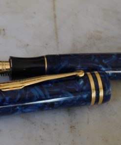 STYLO PLUME SHEAFFER BALANCE EN RESINE BLEU MARBREE- PLUME EN OR MASSIF 18 CARATS