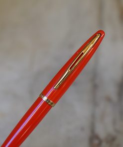 MAGNIFIQUE STYLO BILLE WATERMAN CARENE EN LAQUE ORANGE & PL. OR 18 CARATS