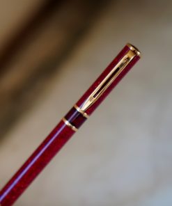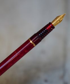 STYLO PLUME WATERMAN EN LAQUE ROUGE MARBREE & PL. OR 18 CARATS – MOYENNE