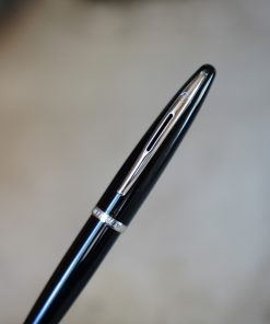 STYLO BILLE WATERMAN CARENE EN LAQUE NOIRE – FINITION PLATINEE