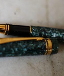 STYLO ROLLER PARKER DUOFOLD EN RESINE VERTE MARBREE & PL. OR 18 CARATS – RARE