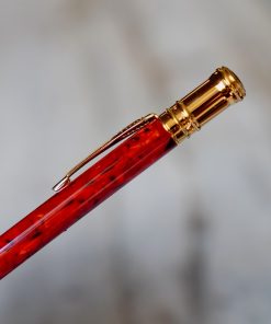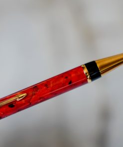 STYLO BILLE PARKER DUOFOLD EN RESINE ROUGE MARBRE & PL. OR 18 CARATS
