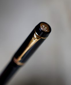 STYLO PLUME PARKER DUOFOLD MINI EN RESINE NOIRE – PLUME OR MASSIF 18 CARATS – 115 MM